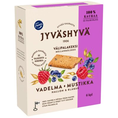 • Fazer Jyväshyvä vadelma-mustikka välipalakeksi 6x30g 180 g