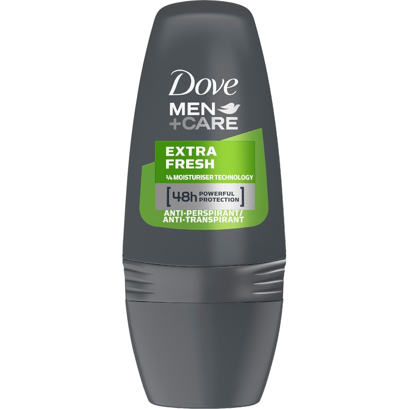 Miehet, kädet ylös! Dove Men+Care Extra Fresh antiperspirantti-roll-on on kehitetty erityisesti miehille antamaan täydellistä suojaa hikoilua vastaan. Se on samanaikaisesti hellävarainen iholle. Dove Men+Care Extra Fresh Roll-on sisältää tehokkaita antiperspiranttiainesosia ja Doven tunnettua kosteutusteknologiaa. Antiperspirantin sisältämä kosteuvoide – neljännes kosteusvoidetta – auttaa ehkäisemään ihon kuivumista ja kosteuttaa tehokkaasti. Virkistävä tuoksu antaa raikkaan tunteen koko päiväksi.
