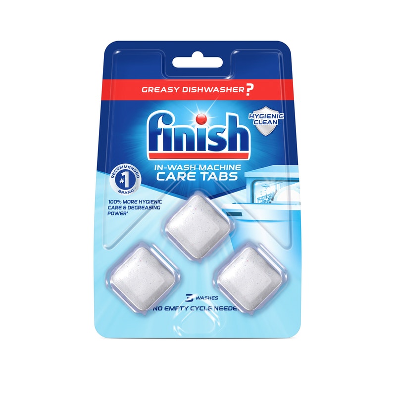 Uusi Finish pesuohjelman aikana puhdistava koneenpuhdistustabletti sisältää 100 % enemmän rasvaa poistavia aktiivisia ainesosia.* Et tarvitse erillistä pesuohjelmaa. Pesuohjelman aikana puhdistava koneenpuhdistustabletti irrottaa tehokkaasti rasvan ja kertyneen lian koneen näkymättömissä olevista osista, kuten suihkuvarsista ja suodattimista samalla, kun astianpesukoneesi pesee astiat. Käytä tablettia kerran kuussa Finish-konetiskitablettien kanssa.