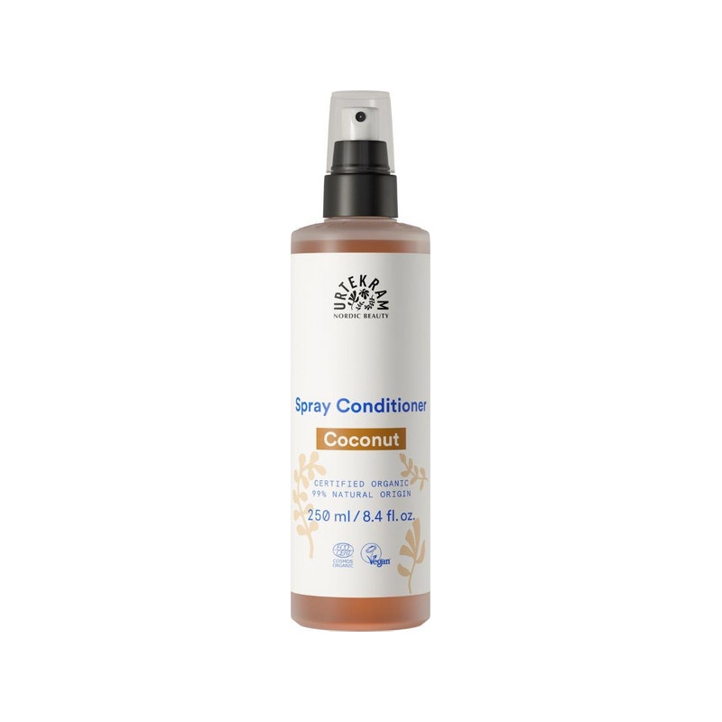 Urtekram Kookos hiuksiin jätettävä hoitosuihke sisältää kosteuttavaa luomukookosnektaria joka ehkäisee hiusten kuivuutta luonnollisella tavalla. Hiuksista tulee helposti selvitettävät ja silkinpehmeät. Suihkuta kosteisiin tai kuiviin hiuksiin, älä huuhtele. Ravistettava ennen käyttöä. Sertifioitu Ecocert Cosmos Organic standardin mukaisesti, vegaaninen ja 100 % biohajoava koostumus.