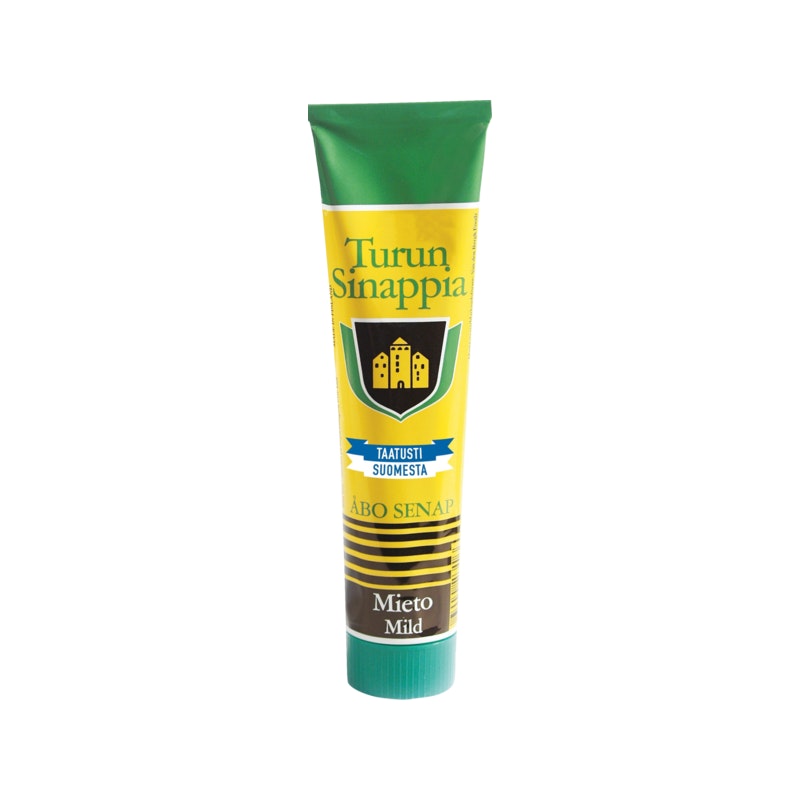 Turun Sinappia on aito suomalainen klassikko, jonka maun suomalainen oppii tuntemaan jo lapsena. Turun mieto sinappi kuuluu itsestäänselvyytenä suomalaiseen ruokapöytään sekä arkeen että juhlaan. Käytä ruoanlaittoon. Mieto sinappi sopii erityisen hyvin täytettyjen voileipien kanssa, burgereiden mausteeksi, höyryävän grillimakkaran kyytipojaksi ja tietenkin hernekeittoon. Miedon sinapin tunnistat vihreästä pakkauksesta.