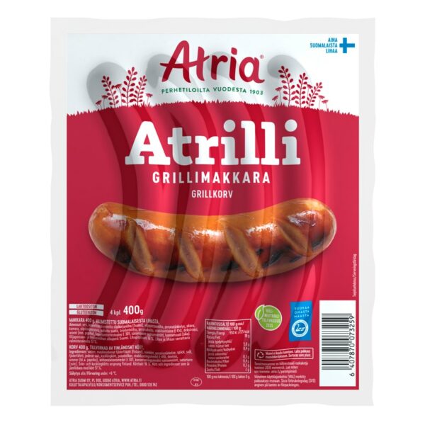 Atria Atrilli sopii paitsi grillimakkaraksi myös ruoanlaittoon. Kokeile Atrillia salaattipedillä ja grillaa kylkeen rapeita leipäpaloja ja mausta salaatti valkosipulista, sitruunasta, sinapista ja öljystä sekoitetulla kastikkeella. Atrilli on valmistettu kotimaisesta viljaporsaan- ja broilerinlihasta.