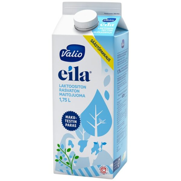 Valio Eila® laktoositon rasvaton maitojuoma maistuu tavalliselta, raikkaalta maidolta ilman makeutta. Valio Eila® maitojuomat onkin valittu makutestin parhaiksi*. Nauti ruokajuomana tai käytä ruoanlaitossa ja leivonnassa! Kaikki Valio Eila® tuotteet sopivat laktoosittomaan ruokavalioon. Laktoosi on poistettu Valion patentoimalla teknologialla. *Laktoosittomien maitojuomien tuotetesti, Makery Oy (4/2018, n=243).