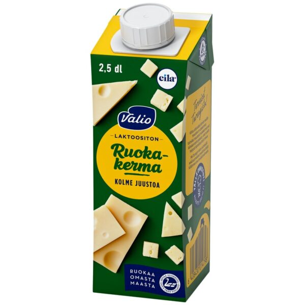 Laktoositon Valio ruokakerma kolme juustoa sopii kaikkeen ruoanvalmistukseen ja suolaisiin leivonnaisiin. Se kestää hyvin kuumennusta ja tuo pastakastikkeisiin, keittoihin ja uuniruokiin juustoisen täyteläistä makua. Kun jääkaapin vakiovarustukseen kuuluu purkki tai pari ruokakermaa, on helppo ja nopea arkiruoka askeleen lähempänä. Tutustu myös muihin Valio ruokakermoihin!