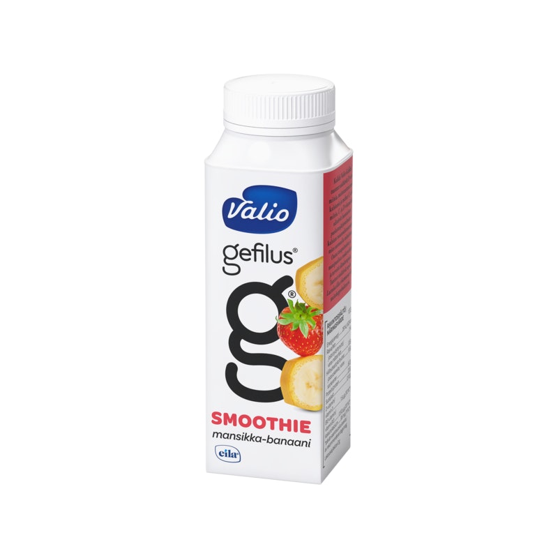 Vahvista vastustuskykyä! Valio Gefilus® smoothie on koko perheelle sopiva samettisen pehmeä juotava välipala, jossa yhdistyy marjojen ja hedelmien raikas maku sekä jogurtin pehmeys. Valio Gefilus® smoothie sisältää B12-vitamiinia ja sinkkiä sekä runsaasti C- ja D-vitamiineja, jotka edistävät luontaisen puolustusjärjestelmän normaalia toimintaa. Nauti osana tasapainoista ja monipuolista ruokavaliota ja terveitä elämäntapoja. Mukana myös LGG® maitohappobakteeri.