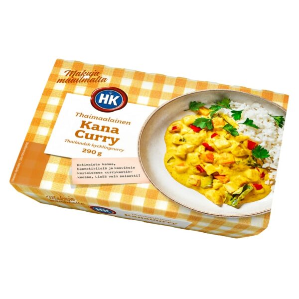 Thaimaalainen kanacurry tarjoilee mikrovalmiin annoksen verran makuja maailmalta. Kana on totta kai Suomesta. HK:n kanacurry -ateriassa tarjoilemme suomalaista kanaa, basmatiriisiä ja kasviksia keltaisessa currykastikkeessa. Mikrovalmis annosateria lämpenee mikrossa parissa minuutissa ja annoksen voi nauttia pakkauksestaan. Täydennä mieleisillä kasviksilla. Aterian valmistamme Suomessa, Vantaan Pakkalassa. Lajittele pakkaus aterian jälkeen muovina ja kartonkina.
