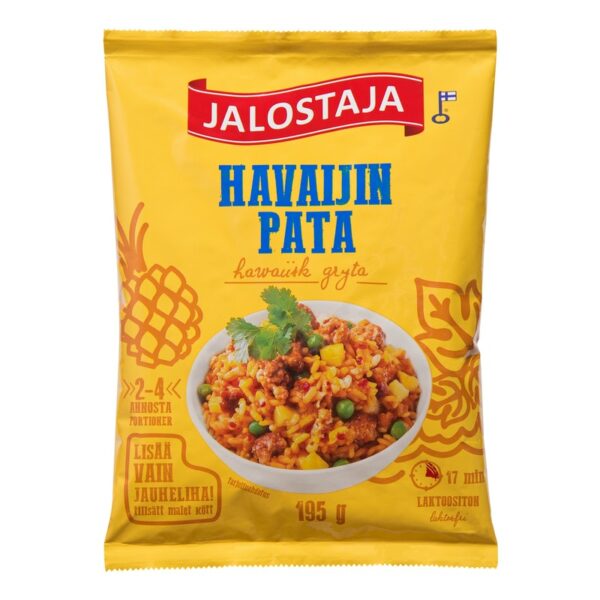 Jalostajan Havaijin pata on kotikeittiön pelastaja, joka valmistuu käden käänteessä myös kokemattomalta kotikokilta. Avaamaton pakkaus säilyy pitkään kuivassa paikassa, huoneenlämmössä.