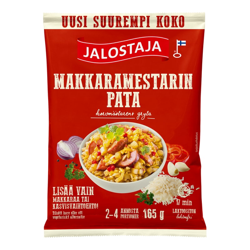 Jalostajan Makkaramestarin pata sopii niin pieneen kuin suureenkin nälkään. Avaamaton pakkaus säilyy pitkään kuivassa paikassa, huoneenlämmössä.