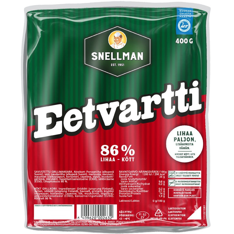 Rouhea Eetvartti on makkaroiden aatelia. Lihaisa A-luokan grillimakkara luonnonsuolessa, ilman kamaraa ja lisättyä fosfaattia. Ei turhuuksia, vain suomalaista lihaa. Todella hyvä makkara!