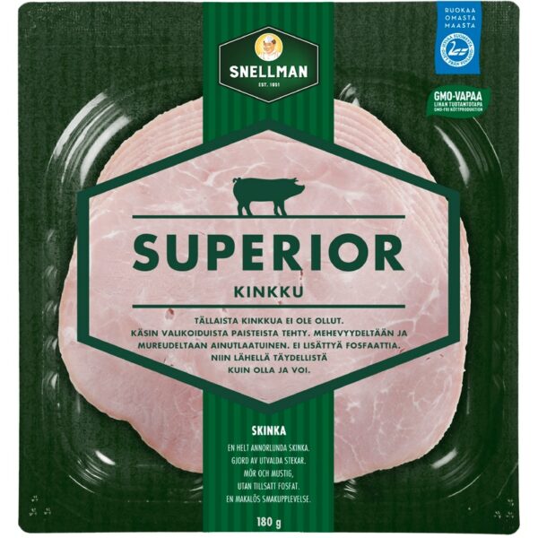 Superior-kinkkuun ei käytetä krossattua lihaa eikä lisättyä fosfaattia ja maku viimeistellään merisuolalla. Pitkän tuotekehitysprosessin tulos on todellinen helmi, pitkä kypsytysaika takaa tumman mureuden, raaka-aineena toimii maailman suomalaisin possu, Snellmanin maatiaispossu.