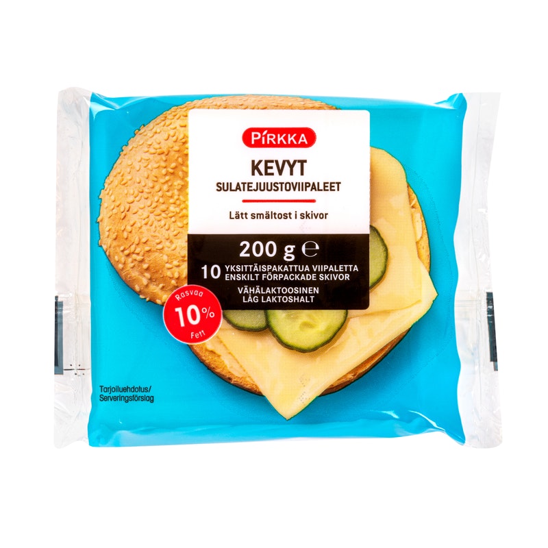 Pirkka kevyt sulatejuustoviipaleet 10% 200g vähälaktoosinen