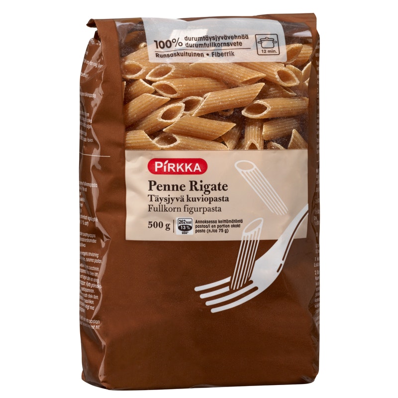 Pirkka penne rigate täysjyvä kuviopasta 500g