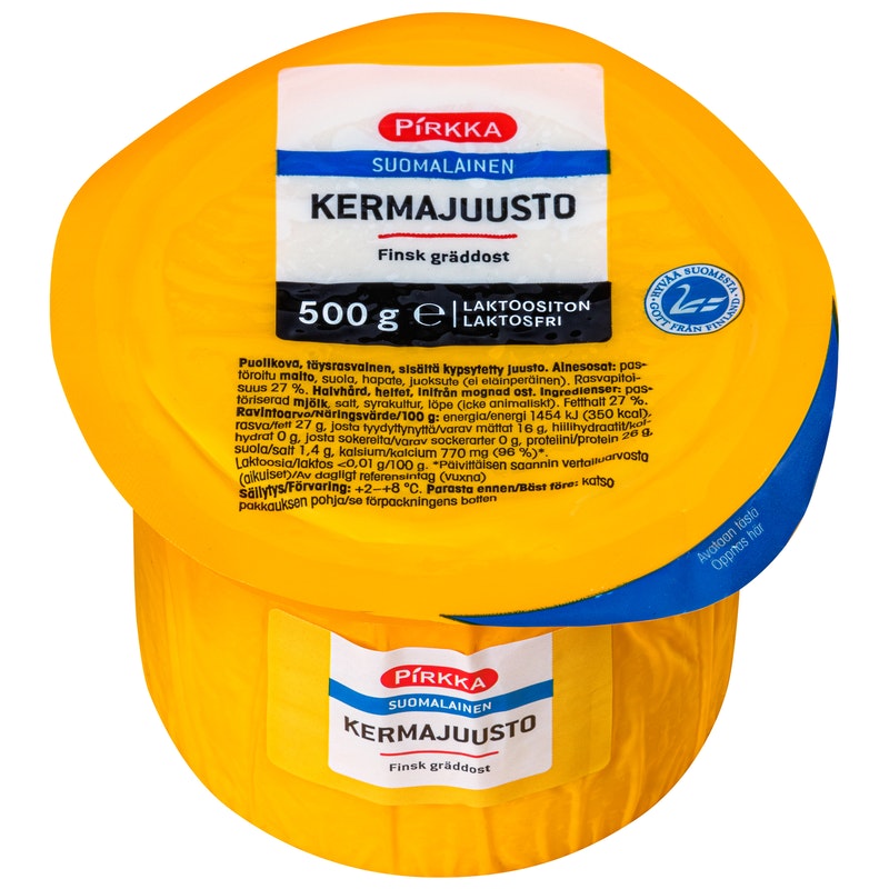 Pirkka suomalainen kermajuusto 500g laktoositon