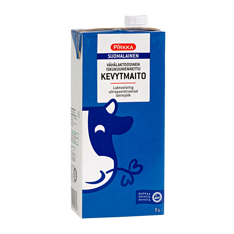 Pirkka suomalainen vähälaktoosinen iskukuumennettu kevytmaito 1l UHT