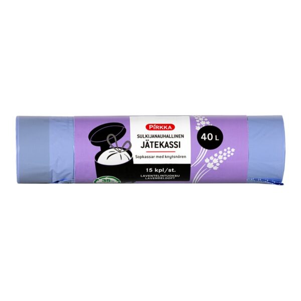 Pirkka sulkijanauhallinen jätekassi 40 l 15 kpl laventelintuoksu