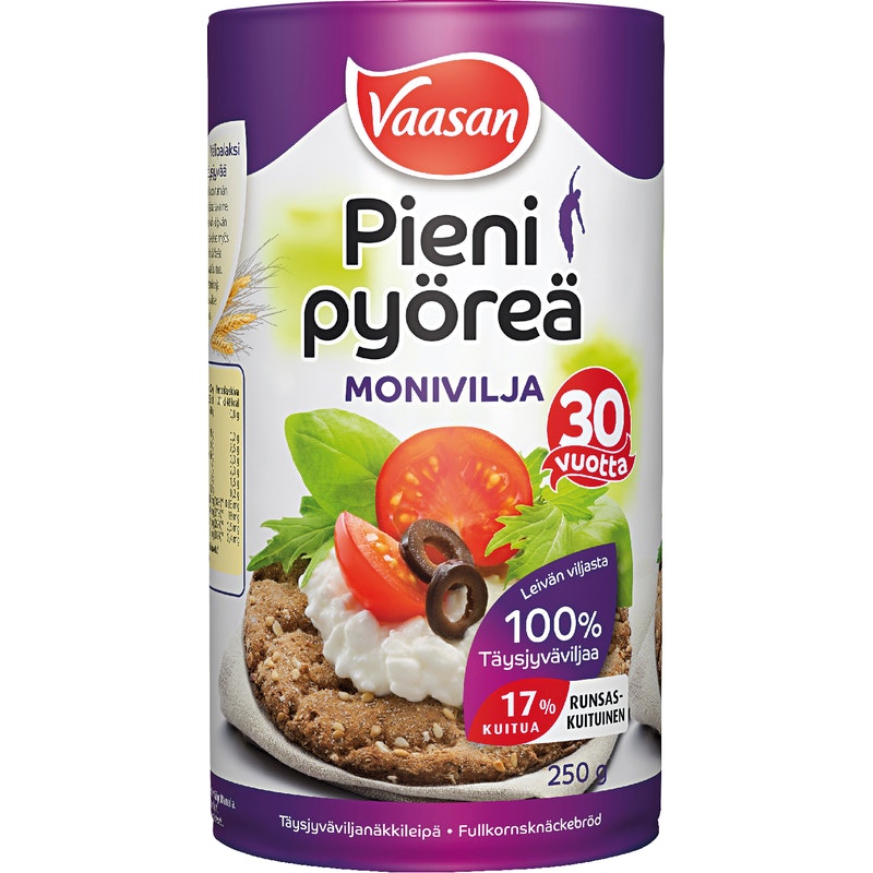 Täysjyväviljanäkkileipä neljästä viljasta: rukiista, kaurasta, vehnästä ja ohrasta. Pinnalla herkullisia seesaminsiemeniä ja kauraa. Valmistettu Suomessa.
