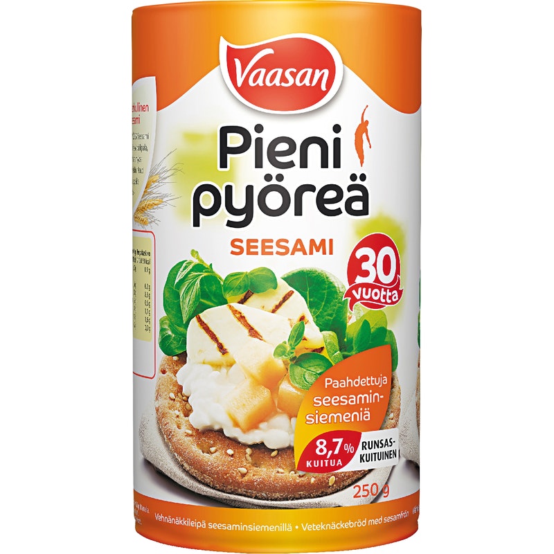 Suomessa valmistettu pyöreä vehnänäkkileipä, jonka pinnalla houkuttelevia seesaminsiemeniä. Runsaskuituinen.