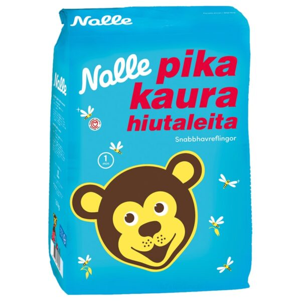 Runsaskuituiset Nalle Pikakaurahiutaleet on valmistettu täysjyväviljasta. Täysjyväkaurasta tehty puuro on pehmeän makuinen ja lempeä vatsalle. Keittoaika vain 1 minuutti! Kuitupitoisuus 11%.