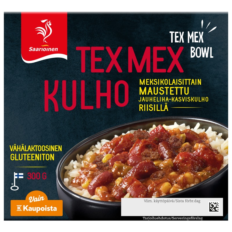 Riisiä ja täyteläisen tuliseksi haudutettua jauheliha-tomaattikastiketta, jossa paahdettuja paprikoita, kidneypapuja ja maissia. Maustettu mm. chilillä, cayennella ja valkosipulilla. Cheddarjuustoinen riisi pehmentää makukokonaisuutta.