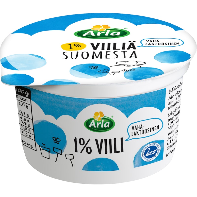 Suomalainen vähälaktoosinen ja vähärasvainen viili Sipoosta.