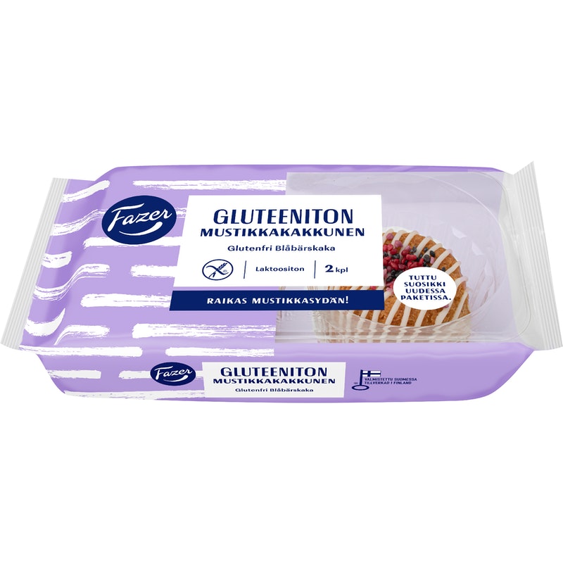 Fazer Gluteeniton Mustikkakakkunen on täyteläinen mustikkaherkku, joka maistuu sekä gluteenillista että gluteenitonta ruokavaliota noudattaville. Suussasulavissa kakkusissa on runsaasti herkullista mustikkatäytettä. Kahden kappaleen pakkauksesta riittää maisteltavaa myös ystävälle.