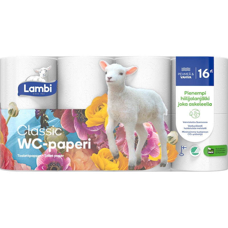 Kutsu kesä kotiisi Lambin kesäkääreellisillä papereilla. Korkealaatuinen, pehmeä ja vahva WC-paperi on valmistettu suomalaisesta puhtaasta ensikuidusta, vastuullisesti Mäntän paperitehtaalla. Kesäkääreelliset paperit ovat saatavilla vain rajoitetun ajan!