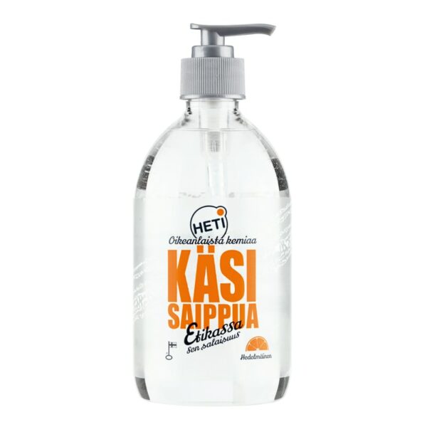 Hyväntuoksuinen, kotimaista Rajamäen omenaviinietikkaa sisältävä raikas saippua puhdistaa tehokkaasti ja neutraloi vaikeitakin hajuja sopien hyvin keittiöön ja kylpyhuoneeseen. Tuoksu raikas mandariini. Ei lisättyjä väriaineita ja pullo on kierrätysmuovia. Valmistettu Suomessa ja tuotteelle on myönnetty Avainlippu-tunnus.
