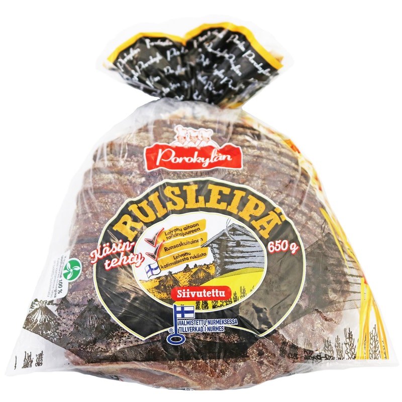 Siivutettu ruisleipä. Suomalaista ruista 92 % viljaraaka-aineista ja 60 % leivän painosta. Runsaskuituinen. Maidoton. Laktoositon. Leivottu aitoon taikinanjuureen.