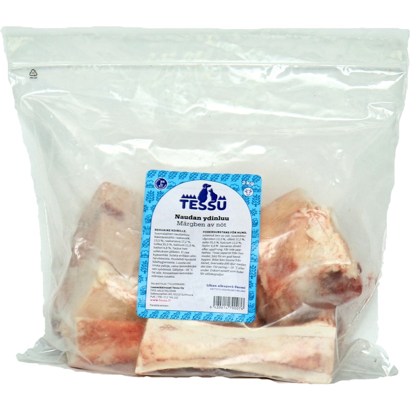 Raakapakaste uudelleensuljettavassa pussissa. Kotimainen, kokonainen naudan ydinluu sahattuna erilaisiksi paloiksi on paitsi herkullista evästä, myös erinomaista ajanvietettä koirallesi. Samalla se myös auttaa puhdistamaan koiran hampaita. Valvothan koiraa aina sen syödessä luuta sisältäviä tuotteita.