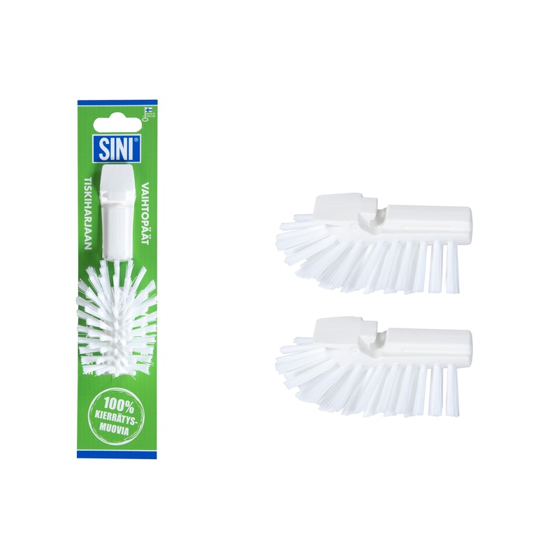 Astianpesuharjan vaihtopäitä myydään kahden kappaleen pakkauksessa. Vaihtopää on helppo vaihtaa tiskiharjaan, joten säästä varsi, vaihda pää – jätettä ei paljon jää!