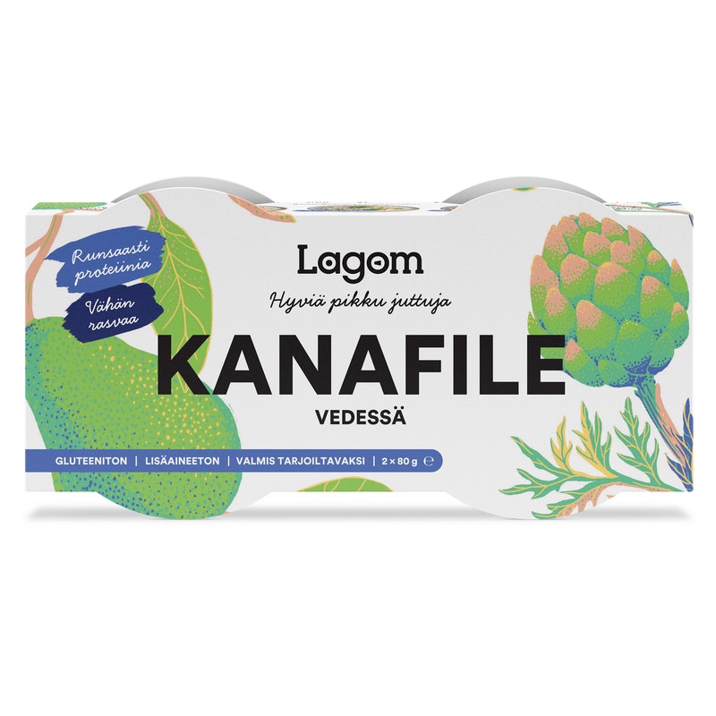 Lagom kanafile on maukas, heti käyttövalmis, kypsennetty kanafile. Sopii esimerkiksi salaatteihin, pastaan, voileivän- ja pizzan päälle. Ei lisäaineita. Sisältää runsaasti proteiinia. Gluteeniton.