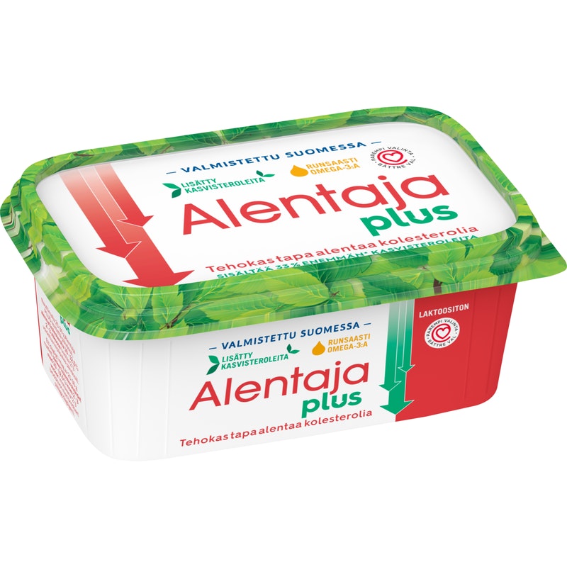 Vähärasvainen rypsiöljyä sisältävä kasvirasvalevite, jossa on muita Alentaja -tuotteita enemmän vaikuttavaa ainetta eli kasvisteroleja. Rasvan osuus levitteessä on 50 %. Säännöllisesti käytettynä ja osana terveellistä elämäntapaa sekä monipuolista ja tasapainoista, runsaasti kasviksia ja hedelmiä sisältävää ruokavaliota Alentaja Plus pienentää tehokkaasti, turvallisesti ja pysyvästi veren LDL kolesterolia 10–12,5 %. Sopiva käyttömäärä on noin 3–6 tl. päivässä.