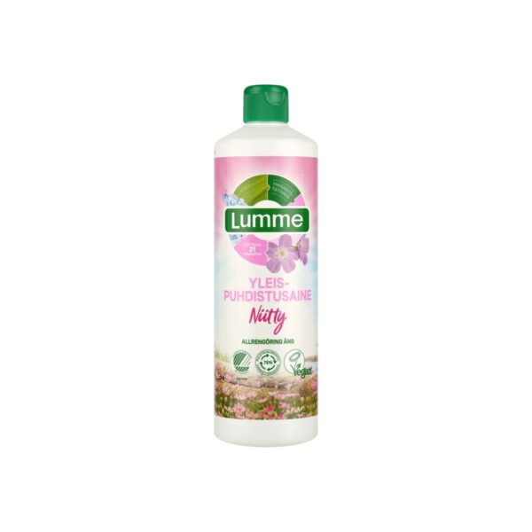Raikkaan tuoksuinen Lumme Yleispuhdistusaine Niitty puhdistaa tehokkaasti kodin ympäristöä kuormittamatta. Tuote soveltuu käytettäväksi kaikille vesipesua kestäville pinnoille, esimerkiksi kodin lattioille sekä keittiön ja wc:n pinnoille. Tuote on ympäristömerkitty Joutsenmerkillä, mikä tarkoittaa sen täyttävän tiukat vaatimukset raaka-aineiden ympäristö- ja terveysvaikutusten, pesutehokkuuden sekä pakkausmateriaalien kierrätettävyyden suhteen. Tuote on myös täysin kasvipohjainen ja Vegan-merkitty. Riittoisan koostumuksen ansiosta peset tuotteella jopa 21 kertaa. Voit tehdä Lumme Yleispuhdistusaineesta myös kätevän puhdistussuihkeen sekoittamalla 5 ml tuotetta ja 5 dl vettä suihkepulloon. Pullo on valmistettu 75 % kierrätysmuovista. Kierrätä pullo ja korkki erikseen muovina.