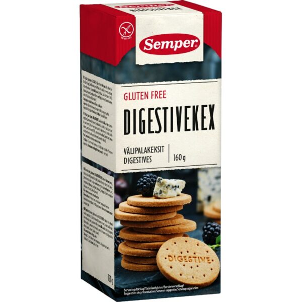 Semperin Digestive-keksi on suosikki ja klassikko juustolautasella, joka maistuu erityisen hyvälle tuoreiden viikunoiden tai hyvän hillon kanssa. Sopii myös mainiosti leivontaan esim. juustokakun pohjaan. Keksit sopivat Low FODMAP ruokavalioon.