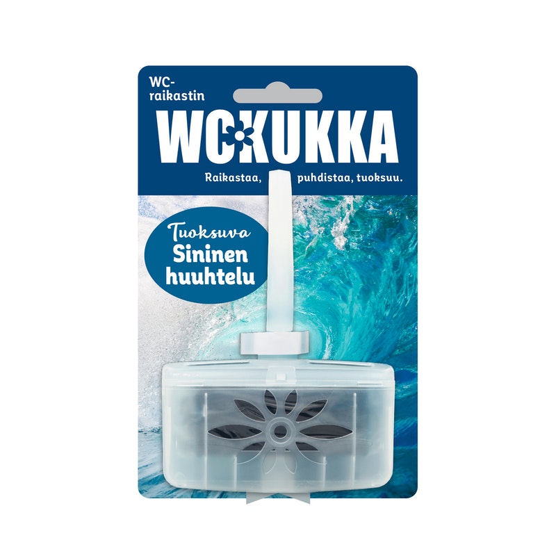 WC Kukka Sininen huuhtelu wc-raikastin puhdistaa wc-altaan ja antaa raikkaan tuoksun jokaisella huuhtelukerralla. WC-raikastin ennaltaehkäisee kalkin muodostumista ja poistaa epämiellyttäviä hajuja. Puhdas, mieto tuoksu.