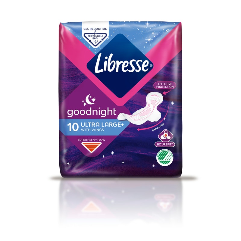 Siivekkeellisissä yösiteissämme on uusi kehon liikkeisiin mukautuva Max Cour-V -teknologia, joka takaa maksimaalisen suojan kuukautisten aikana. Goodnight Ultra Large -siteet sopivat runsaaseen vuotoon ja tarjoavat suojaa läpi yön. Edestä ja takaa levennetty side takaa maksimaalisen suojan, missä tahansa nukkumisasennossa, eikä ohivuotoja synny. Dermatologisesti testattu ja hajusteeton.