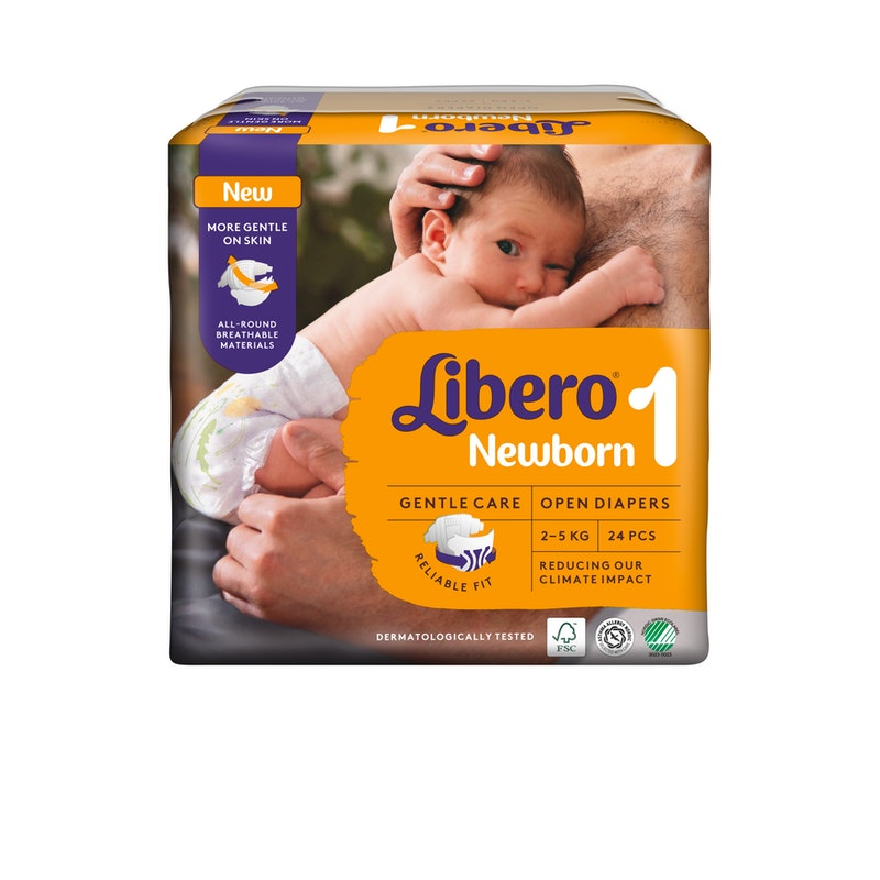 Libero Newborn koko 1 -vaipassa on myötäilevä istuvuus ohuen ja joustavan ytimen ansiosta, ja se sopii vauvoille, jotka painavat 2-5 kg. Kätevä kosteusindikaattori osoittaa, milloin on vaihdon aika. Vaipan etuosan erityinen muotoilu takaa, että se istuu mukavasti vastasyntyneen vauvasi herkän navan ympärillä. Osana Liberon tavoitetta vähentää ilmastovaikutuksia, yli 50 % pakkauksesta on valmistettu uusiutuvista materiaaleista ja Liberon vaippatehtaissa käytetään vain uusiutuvaa sähköä. Lapsesi saa luotettavaa suojaa päivällä ja yöllä kaksinkertaisten vuotosuojien ja huippuimukykyisen ytimen anisosta. Vaipan pehmeä ja hengittävä materiaali on dermatologisesti testattu. Voiteettomat Libero Newborn -vaipat ovat Joutsenmerkittyjä, Asthma Allergy Nordicin suosittelemia ja FSC-sertifioituja.