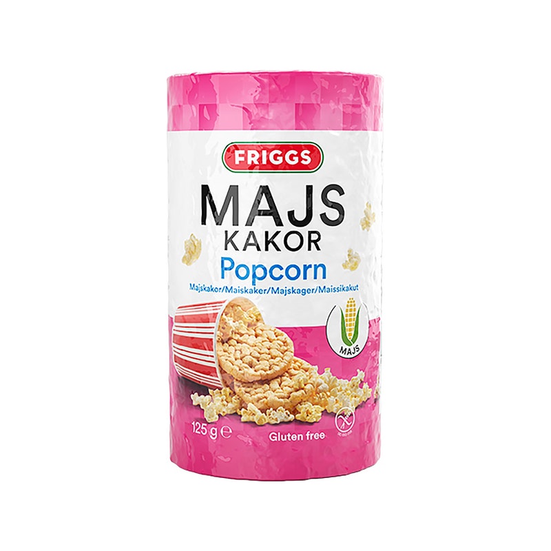 Friggs Maissikakku Popcorn on luonnollisesti gluteeniton maissikakku, jossa on suussasulavan voisen popcornin maku. Täydellinen popcornia himoitseville herkuttelijoille, ketkä haluavat syödä maukasta välipalaa missä tahansa. Ja mikä parasta…. Näitä ei tarvitse valmistaa mikrossa tai kattilassa, olemme jo tehneet työn puolestasi.