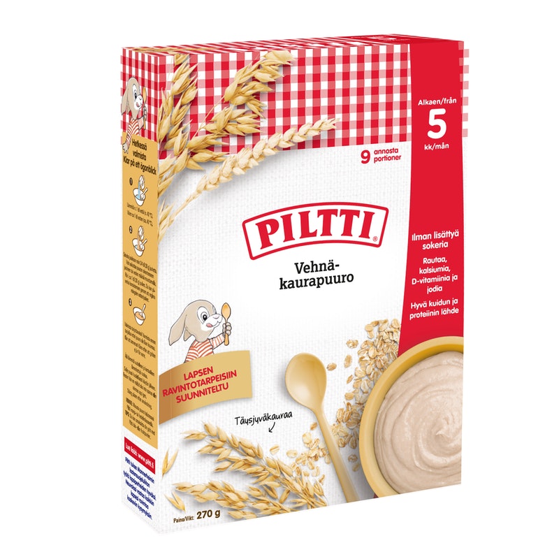 Fullkornsgröt med havre baserad på mjölk. För barn 5 måns ålder.