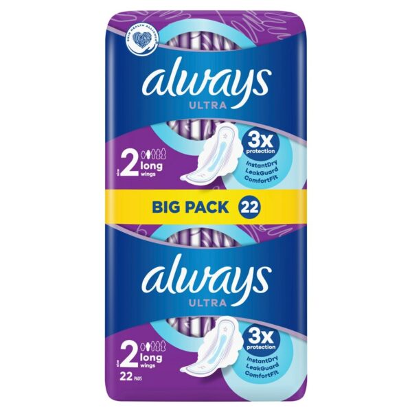 Kaikki naiset ovat erilaisia. Always Ultra Long -side siivekkeillä, koko 2, antaa jopa 8 tunnin suojan juuri sinun muodoillesi ja vuodollesi, jotta voit tuntea olosi varmaksi, liikuitpa miten paljon tahansa. Ihanteellinen niukkaan vuotoon L-koon pikkuhousuissa, kohtalaiseen vuotoon M- tai L-koon pikkuhousuissa tai runsaaseen vuotoon S-koon pikkuhousuissa. Always Ultra -siteessä on siteen hyvin paikallaan pitävä Flex & Fit -järjestelmä ja vuotamaton nestettä lukitseva geeli, joka imee nesteen ja auttaa siten estämään ohivuodot. Always Ultra -side on erittäin mukavan tuntuinen ja antaa erinomaisen suojan huolimatta siitä, että se on vain 3 mm paksuinen.