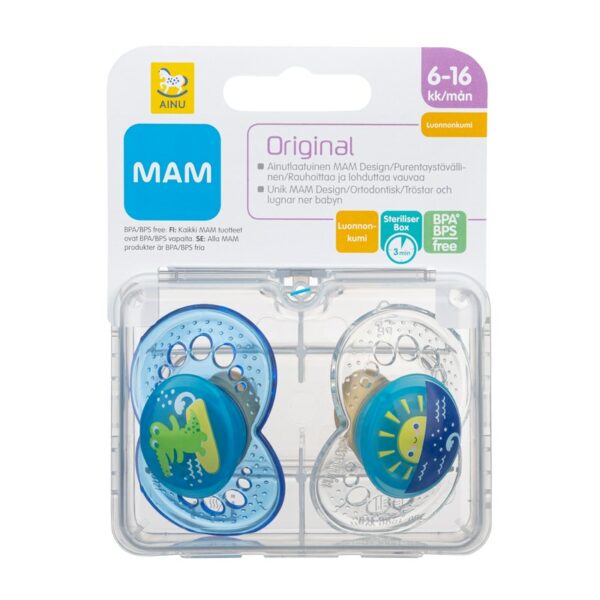 Turvallinen ja mukava luonnonkuminen tutti lohduttaa ja auttaa vauvaa nukahtamaan ja rauhoittumaan. Tutti on aina oikein päin vauvan suussa ja se on mukava sekä turvallinen käyttää. Helppo puhdistaa ja tutti voidaan steriloida mikrossa sen omassa kotelossa. Ikäsuositus 6-16kk.